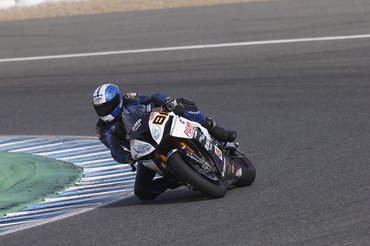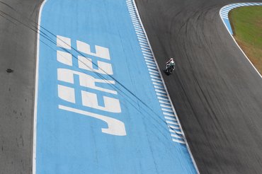 És akkor itt el is jutunk az alaptalan félelmemhez. Miszerint egy hozzám hasonló rugós alátétnek már az is nagy eredmény lesz, ha egyáltalán körbe találok egy verseny superbike-kal a számomra ismeretlen grand prix pályán – persze haladósan, anélkül, hogy betakaróznék. Egyrészt mert a jerezi aszfaltcsík sokkal barátságosabb vonalvezetésű a monzai őrületnél. Sokat látott barátom, Handsome Henrik szerint van benne némi Hungaroringes beütés – szerintem viszont sokkal ritmusosabb annál. Igazi gyors motoros pálya, sikánok vagy nagyon lassú visszafordítók nélkül.