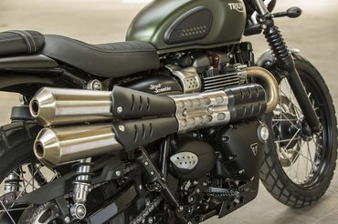 Teljesen új vázba építették be a Street Twinből már ismert 900 köbcentis blokkot a Triumph mérnökei. Így született meg a Street Scrambler, amelyet a milánói motorszalonon mutattak meg a nagyközönségnek. A vázat igyekeztek úgy kialakítani, hogy az a leginkább megfeleljen a scrambler stílusnak. A formatervezők az egyszerűségre törekedtek, de fontos szempont volt a testreszabhatóság is. A dupla kipufogót magasra húzták, az ülés cserélhető, lábtartóból pedig túra-stílusút kapunk.