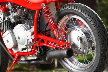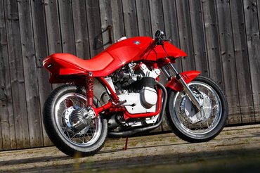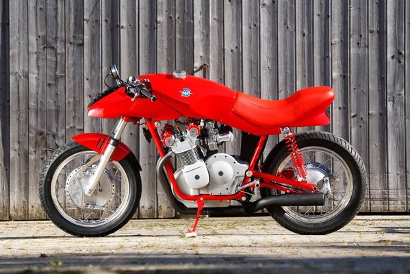 A hangyász felépítménytől eltekintve ez egy MV Agusta 750 Sport, amit 1970 és '75 között gyártottak, az első három évben a képen látható duplex dobfékkel, az utolsó kettőben pedig már tárcsával. Volt belőle Super Sport kivitel is idommal, és GT változat bronzos fényezéssel, szerényebb teljesítménnyel és túrakormánnyal. Egyik sem lett mai értelemben sikertermék, Sportból 583 darab készült, GT-ből 33. Ez volt ugyanis az a korszak, amikor jött a japán motorgyártás, és kinyírta az európait.