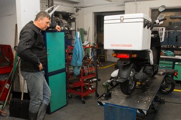 Jó hír, hogy 44 ezer kilométer után sincs olajfogyasztás. Az olajkép motor- és hajtásoldalon egyaránt tiszta, a lejövő mennyiség azonos a betöltöttel. A görgők viszont elhasználódtak, a hengeres felületen látványos lapok jelentek meg, ezeket cserélni kellett. Az eddigi 5,7 grammosakat utángyártott 6,1-esekre cseréltük, ami némileg növelte a végsebességet. Ez végül felemás eredményt hozott, mert ha az én kérésemre is, de kissé túllőttünk a célon. Alig mászik fel a Kiscellin, a Kapy úton pedig 14 km/h az elérhető maximális tempó az eddigi 24 helyett. Viszont a végsebességnél kifekszik a kilométeróra, 61-65 km/h-val száguldunk, a méréshatáron igencsak túl, tehát ismét figyelnem kell a VÉDÁK-ra.