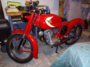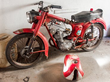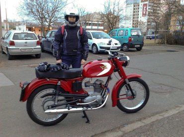 Én méltányolom, hogy a tulajdonosnak kell ilyenkor irományt vinnie, csak egy 1956-os Moto Morini Sbarazzino esetében ez felettébb komplikált. Lassan húsz éve próbálok legalább egy kezelési utasítást venni hozzá, de nem találtam, igazából egy régi német veterános cikken és néhány említésen kívül nincs sok információ erről a motorról. A Sbarazzino volt ugyanis az egyik utolsó 98-as motor Olaszországban, mert valamikor az ötvenes évek vége táján bindzsiztek egyet vagy a jogsival, vagy az adókkal, mindenesetre onnantól minden gyártó átnyergelt hirtelen a 125-ösök gyártására. A Sbarazzino becsületből maradt még 1966-ig a kínálatban, de nem foglalkoztak vele sokat. Ma meg pont a ritkasága miatt értékesebb, mint a sokkal nagyobb mennyiségben fennmaradt, 125-ös Corsaro, egy igazán szép példány ára a tavalyi katalógusban 5400 euró volt, még talán az enyém is megéri annak a felét.