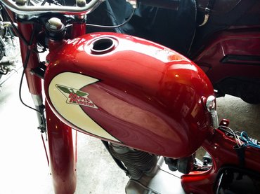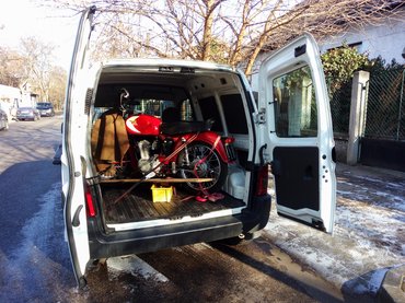 Azt se tudtam akkor, milyen motort vettem, később nyomoztam csak ki a papírok alapján, hogy ez egy 1956-os Moto Morini Sbarazzino, 98 köbcentis, 6,5 lóerős. Még gyártattam hozzá új bovdeneket, kicsit megjárattam az akkori, Báróczy utcai garázsom előtt, aztán eltettem. 30 ezer forint nem sok, a Morini se foglalt sok helyet, nem készítettem neki konkrét tervet. Ami ez után jött, megírtam már egy korábbi posztban: szétszedtem, vettem egy valag vadonatúj alkatrészt mindenféle későbbi imolai börzéken, Karesz lefényezte, majd Gyuri kipótolt, krómozott, gyöngyöztetett, összerakott. Miután hazahoztam, egy próba alkalmával elszállt az olajszivattyúja, megszorult a motor, állt megint egy évet, hónoltam rajta egyet házilag, vettem az olasz eBayről olajszivattyút, gyűrűket, egyszer csak kvázi motor lett belőle.