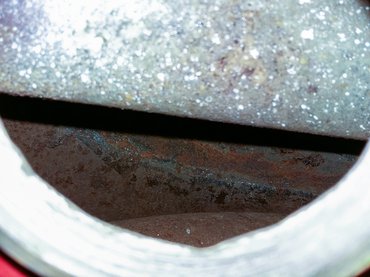 Amitől korábban is féltem, bekövetkezett. Már akkor szerettem volna tankfelújítót tenni a tartályba, amikor Gyurinál készült a motor, de épp nem érkezett szállítmány, gondoltam, majd később megcsinálom, magam. Most eljött ennek az ideje, ugyanis a benzincső hajlata és a Dell'Orto karburátor szűrője már a rövid út alatt is tele lett rozsdaporral. Szerencsére Gajdán Mikivel már korábban vettünk közösen egy nagyobb adag tankfelújítót az Oldtimer Perfekttől. Mivel ő már megcsinálta a BSA-ja tankját (azt a motort vele cseréltem kábé öt éve), emiatt a szett maradéka nálam lakott két hónapja. Levettem a tankot, belevilágítottam – naná, tiszta rozsda belül, még jó, hogy bazi vastag anyagból van, egy mai japán tartály már átlukadt volna.