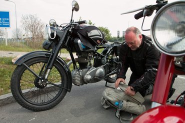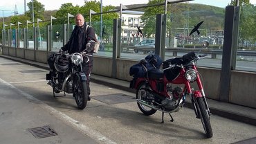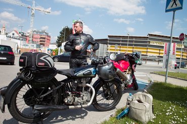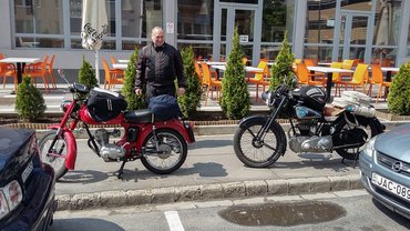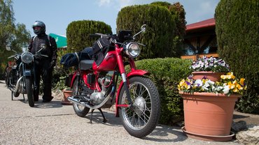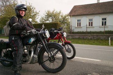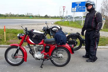 Úgy gondolom, bárkinek ez lenne a leglogikusabb megoldás: ha Ausztriába kell menni egy programra, majd másnap hazatérni onnan, a 61 éves, 98 köbcentis motorját tolja ki a feladathoz a garázsból. Esetleg a 66 éves 250 köbcentiset, de az már szinte mindegy.