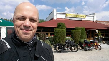 Ez nagyjából a túra végét is jelentette. Elbúcsúztunk, bár a búcsú nem ment könnyen, ez sejthető volt az előzményekből. Rúgás, indul, sisak lehajt, leáll. Rúg, pöff itt, rúg, pöff ott, majd semmi többet. Én kicsit úgy voltam, hogy a Top Gear (azaz most már The Grand Tour) stílusában felpattanok a Morinire és otthagyom a drága barátot, szenvedni, de persze nem tehettem, csak lassan megőrültem belül. Pillanatok alatt elillant a bent felszedett meleg, olyan párás lett a felhajtott bukóm plexije a leheletemtől, hogy csöpögni kezdett a víz, Endre meg csak rugdalt, rugdalt, rugdalt, azt hittem, ott terül el, ennek a drága embernek az általam harmincöt éve ismert, mindig szelíd tekintete valami gyilkos zöld fényben lobogott. Ettől viszont már az NSU is megijedt. Óriási füstöt köpve egyszer csak elkapta, én meg az Endrét még soha nem láttam ilyen villámgyorsan cselekedni. Épp csak regisztráltam, megy a gép, ő pedig már ott se volt, csak a füst lebegett utána.