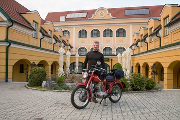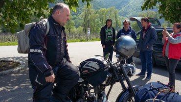 A Wachauban autózni gyönyörű. Vad, meredek sziklafalak, közte a még sokkal kisebb, de már így is eléggé folyamszerű Duna, kis várak, kastélyok, romok a szirteken, vasútimakett-falvak szerteszéjjel, nyugalom, jólét, kiegyensúlyozottság, a nyugati világ tökéletes idillje ez. A Wachauban motorozni lenyűgöző, mert mindezt a csodát nem egy bezárt, elszigetelő konzervdobozból, hanem 360 fokos, szemi-szagi-testi-lelki panorámában élvezheti az ember. Veteránmotorral egy veterános hétvégén, Magyarországról érkezve ott röfögni a dolgok sűrűjében egyszerűen észbontó, eszeveszett, balzsamos és vadítóan izgalmas egyszerre. Ilyenkor úgy érzi az ember, minden szenvedést, sőt, annak többszörösét is megérte, hogy ott lehessen. Ilyenkor kifizeti a cég a cechet.