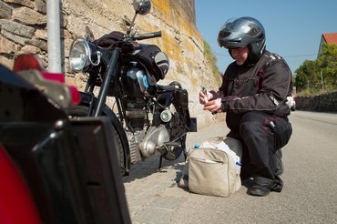 Persze, beszereztem hozzá egy tökéletes hengert és dugót, el is akartam vinni magammal, mert egy nyomórudas, léghűtéses motoron ezeket lecserélni nem nagy ügy. Aztán úgy alakult, hogy az indulás hajnalán lementem a Morinihez, amin rajta lógott a régi, imetes szövet nyeregtáskám, elkezdtem betenni a szerszámokat, hengert, dugót, ruhát... és a két táska begörnyedt a sárhányó alá, majd sarkaival megtámaszkodtak a hátsó kerék küllőin. Oppá, ez így nem forog el. Még futottam egy gyors kört a garázsban, hátha találok valami hajlítható lemez- vagy rúdanyagot, hogy távtartót eszkábáljak belőle, de hiába, ilyenek nem teremnek nálam. Tehát átpakoltam gyorsan a hengeres tengerészzsákba, a maradékot beleszórtam a mágneses tanktáskába, s az így kiigazított szereléssel vágtam útnak a szentendrei találkozó irányába – persze negyedórás késéssel.