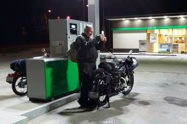 Oké, benzinkút, olaj vesz az Endre motorjába, szendvics esz, ital isz, szerelvény igazít, zúz hazoá. Mindez nagyjából fél órát azért felemésztett az időnkből, tehát jóval kettő után feszültünk neki az országútnak. A lehető legtöbbet akartunk egyben, napsütésben megtenni, hogy a kínos, éjszakai részből minél kevesebb maradjon.