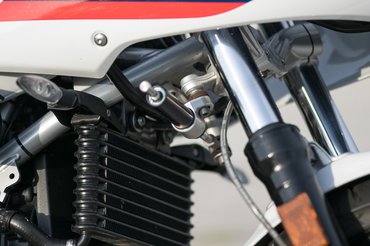 A fejidomról lehet vitatkozni, egy nap nézegetés után már határozottan tetszett. Konkrét előképet nem nagyon találtam, a hetvenes évek bármelyik félburkolt BMW-jét bele tudom látni. A Rumcájsz-pisztoly alakú kipufogóból szokatlan szerénységgel eggyel is beérték, üdvözlöm a mértéktartást, ezektől lett tiszta a formaterv. Az ülés kényelmes, sokkal jobb annál, mint amire ránézésből számítottam – okos optikai trükk, hogy a homokóraalakban futó varrás miatt keskenyebbnek és sportosabbnak tűnik.