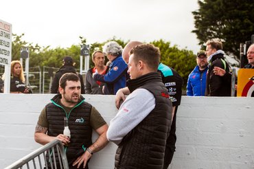 Ian Hutchinson szinte akkor érkezik, amikor a többiek már rajtra készen ülnek a motoron, feszült, hangja remeg. Michael Dunlop követi, szintén sisakban, lehajtott fejjel, szerelői tolják félre az útjába kerülőket. Ők ketten a 2017-es TT nagyágyúi, mindenki sejtette, a Senior kettejük között dől majd el.
