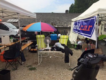 Nem vagyunk szerelők, nem vagyunk profik, a visontai bokszunk is elárul erről valamit (a két fehér sátor között az a színes napernyő a két kempingszékkel). A Totalcar remek szomszéd volt, egy kis hideg átszivárgott a mobil klímájukból.