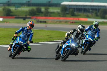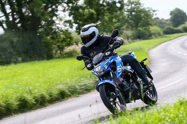 15 lóerőt tud tízezernél, szépen indul, de a menés a nyomatékcsúcstól, tehát nagyjából nyolcezres fordulatnál kezdődik. A tiltásba meglehetősen lassan szalad bele, a fordulatszám-tartomány utolsó szakasza meglepően sokáig tart. A váltón sokat kellett szteppelni, ha nem akartam azonnal lemaradni a felvezetőtől – amúgy idő kérdése volt csak, Taylor Mackenzie tavaly megnyerte a brit stock1000 bajnokságot, idén pedig a British Superbike-ban megy. A kuplung nélküli váltások sajnos nem adták, akadt, nem vette be a fokozatot, ez viszont egyedi hiba volt – a többiek motorján simán ment, és aztán a műszakilag teljesen azonos GSX-S125 sem finnyáskodott, ha szimplán gázelvétellel rúgtam felfelé.
