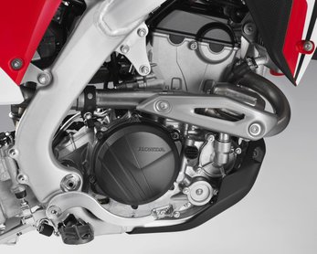 Ennél talán fontosabb újítás, hogy végre önindítóval látták el a motort, egy könnyű lítium akkumulátor segít, hogy ne kelljen rugdalni. Emellett a CRF kapott egy üzemmódválasztó-gombot, amivel könnyen pályához igazítható a motorkarakter - van egy alap, egy lágy és egy agresszív mód, függően attól, hogy csúszós a nyom, vagy jó a tapadás.