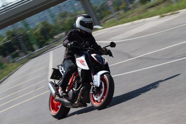 Alapjáraton mély dzsüdzsüdzsü szól, nincs nyugodt huttyogás, ez inkább olyasmi, mint a 2000-es évek kéthengeres superbike-jai, kapásból jelzi, hogy nem a nyugalom szigete lesz a következő megálló. Szépen húz egészen lentről, sokkal simábban indul meg, mint a 990-es Super Duke R, aztán ha ráteszed a gázt, brutálisan kilő. De úgy, hogy arra nincsenek szavak, mármint ami közben kijött a torkomon, az semmilyen nyelven nem számít szónak, de mindenki érti: ÁÁÁÁÁÁÁÁÁÁÁÁÁÁÁÁÁÁÁ!