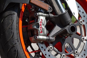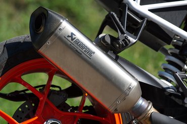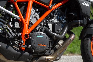 A hatalmas, 1301 köbcentis V2-es blokk szinte teljesen kitölti a térhálós vázat, már a megjelenése figyelmeztet, hogy atommeghajtású vaddisznó. Apropó váz: a gyártási költségek miatt már a Ducati is kezdi hanyagolni az építési módot, a MotoGP-ben is alumínium hídvázat használnak. Ezzel szemben a KTM kitart mellette, nemcsak utcai gépeknél, hanem a Moto3-as, a Moto2-es és a GP versenygépeknél is, ugyanis könnyű, merev, és mostanra hatalmas tapasztalatuk van benne.