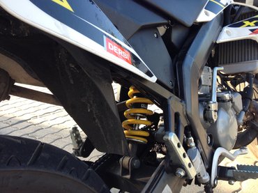 A Senda tehát tulajdonképpen egy inverz tuning S51-es: iszonyú jó, feszes futóművel és olyan fékekkel, hogy egy ujjal és lábujheggyel is alig mertem hozzájuk nyúlni, mert a hidraulikus tárcsák (elöl-hátul) úgy harapnak, hogy ihajj, a futómű pedig kétszer ekkora tömeggel is könnyedén elboldogulna. A kormány nagyon széles, az üléspozíció pedig supermotósan magas, teli talppal le se ért róla a lábam, pedig nem én vagyok Hófehérke nyolcadik, apokrif törpéje.