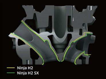 A Kawasaki 2014-ben mutatta be a H2-t és a csak zárt pályára alkalmas H2R-t,és elég hosszú időre megnyerték a lóerőversenyt - a H2R 310 lovával még sokáig nem fog tudni senki versenyre kelni. A kompresszoros feltöltéssel elképesztő nyomatékot és teljesítményt lehet elérni, miközben a motor továbbra is közvetlenül reagál a gázra, és lényegesen kompaktabb marad, mintha a hengerűrtartalmat növelnék. Ez eddig a tananyag, amit bármelyik kisiskolás fel tud mondani. Sokkal érdekesebb ennél, hogyan oldották meg a H2 SX-nél a túramotort karaktert?