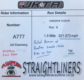Ennél mentek már gyorsabban, még itthon is, a lényeg, hogy a pálya nem sós síkság vagy aszfalt, hanem homok - és ilyen felületen eddig senki nem ment 320 km/h-nál gyorsabban olyan járművel, amely a kerekét hajtja - ez utóbbi azért fontos kitétel, mert rakétaautóval mentek nagyobb tempót. A rekorder jármű egy Kawasaki-zöld, kompresszoros Suzuki Hayabusa volt (Eisenberg egyébként ment ugyanott egy ZZR1400-zal is), körülbelül 350 lóerővel.