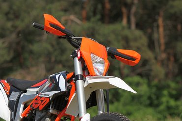 A KTM több mint hatvan éve gyárt terepmotorokat, volt idejük kitapasztalni, hogyan élik túl az eséseket. Alul masszív kartervédő óvja a blokkot, sziklás terepen simán rátámaszkodhat az egész motor, és úgy általában minden kulcsfontosságú alkatrész biztonságban van. A hűtőt betették a váz mögé, a kipufogó csöveit is a váz védi, nagyon szerencsétlenül kell esni, hogy bármi sérüljön. A váltókar is a versenysportból jön, ha leér, behajlik, de egyébként kidobja a mocskot, nem ragad be a bütyke.