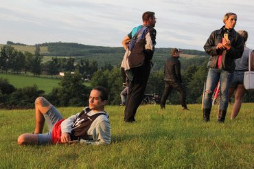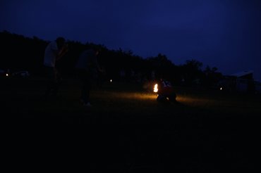 Szombat estére természetesen be volt tervezve 100 szikra futam a domboldalban. A „verseny”, végül elmaradt, a felázott talajon nem sok értelme lett volna kísérteni az Istent – de azért persze lehetett veretni a motorokkal, csak nem volt tétje az együtt rajtolásnak, bizonyítási vágy nélkül a taknyolások is elmaradtak – én legalábbis csak a Simsonos kis srácot láttam indexszel, meg lábtartóval fűcsomókat gyűjteni.