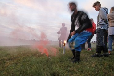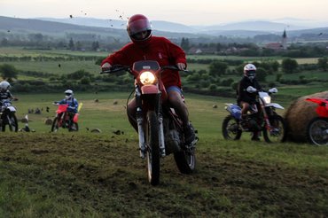 Tényleg ez a domboldalba szervezett játék a fénypontja az egésznek, világítanak a fáklyák, veterán és majdnem veterán endurók tépik rajtnál a sarat. Közben a naplemente elképesztő színekkel világítja meg a dagonyázásra alkalmatlan, tarlóra letámasztott motorokat. Az ember folyamatosan kattintgat, hogy jó képeket tudjon elrakni a buliról.