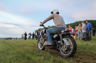 A kiírásból látszott, igyekeztek még több programot csinálni, ősmaradványokat mutatni, meg Landartot villantani (például este hangulatvilágítást kapott az erdő), lettek szponzorok is, ráadásul scrambler-sulit is szerveztek. Jaja, most a scrambler a menő, a cafe racer nagyon 2010, de azért senki nem mutogat rád ujjal, ha nem bütykös a gumid és a kipufogód nem a combodat melegíti belülről. És lehetett az Ipolyban fürdeni, meg traktorozni, felvonulni. Na, ezek nagy része nekünk a kései érkezés miatt kimaradt.