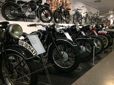 Magyarországra is érkezett a Simson 250 köbcentis négyütemű túramotorjából, az AWO 425-ből, de nem volt olcsó. Itt az alapmodell összes változata ki van állítva, és van, amelyik megkapta a szép, krómpikkelyes oldalkocsit. Természetesen ebből is csináltak versenymotorokat, túraenduró és pályamotorként is megállta a helyét. Mint korabeli nagy motor, rengeteg MZ – Motorradwerk Zschopau - is helyett kapott - még ha keveset is. A Trophyk, TS-ek és ETZ-k időbeli sorrendben állnak, kezdve az MZ első sikermodelljével az RT 125-tel, és befejezve a gyár utolsó fuldokló karcsapásával, az 1000 SF sportmotorral. Persze van ami kilóg a sorból, legnagyobb meglepetésemre egy V2-es Ducati bujkált a sok egyhengeres között – már amennyire el tudott vegyülni ezzel a színnel. Azt sajnos nem írták oda, hogy hogyan került egy tűzpiros olasz motor a rengeteg ős-német közé. Később aztán találtam komoly angol Norton versenymotorokat is, de ezek száma tényleg eltörpül a német technikák mellett.