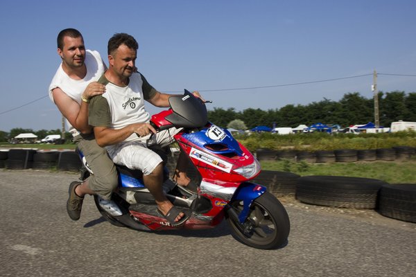 Zoli. Ex MárkAszerviz. Régóta sündörög a pályán, MZ kupában döntötte a gépet és a körrekordokat, tavaly ugrott be a csapatba, és olyat ment, hogy balgaság lenne nem betenni idén is. A csapat – de lehet, hogy az egész verseny – egyetlen nyugdíjas indulója. Aranykezű szerelőnkkel, Zsombival minden eddigi verseny után, kabalából nyomtak egy közös kört, de a kép ne tévesszen meg senkit, mindketten a lányokra buknak, Zoli ráadásul szabad is.