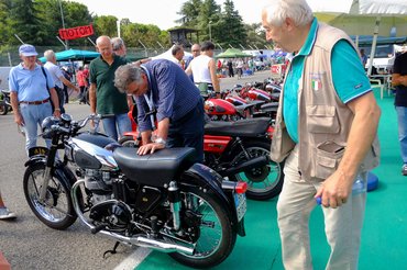 Lóhalálban tekertem egy kört, hogy legalább az alsó-imolai kínálatot feltérképezzem. Egyetlen, kopott és olajos, háborús BSA M20-as oldalt szelepelt motort találtam. Szörnyű aranyos volt, rendes papírokkal, kopottas honvédzöldben, minden, az állapot lenyűgözött, mert imádom ezt a fajta elhasználtságot, még ha gyakran azt is súgja az embernek – nagy-nagy restaurálás lesz a vége... Az ember meg nagyon szabadulni akart tőle. Először mondott rá ötezret, de hozzátette a „trattabile” és a „prezzo buono” szavakat is, majd adta a papírokat. Ráültem – olyan volt nagyjából, mint a C11-es BSA-m, amit évekkel ezelőtt elcseréltem a Gajdán Mikivel – rövid, alacsony, kicsit ügyetlen. Megnéztem a katalógust – izé, ez is 500-as, mint az AJS, de nem 29, csak 13 lóerős, hiszen oldalt szelepelt technikától senki ne várjon gumifüstöt és tízezres fordulatú lángköpéseket.