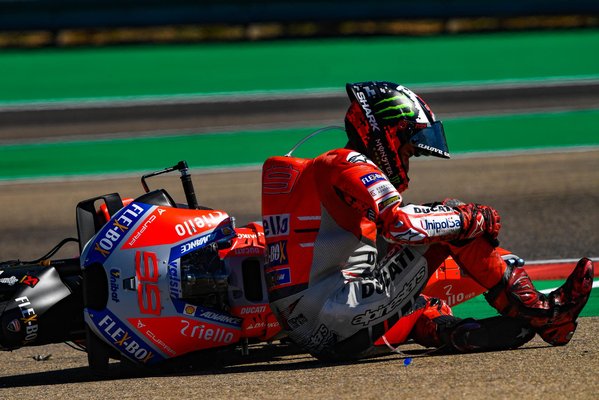 De a rajt utáni első kanyarban csoda helyett dráma következett, Lorenzo a külső ívre sodródott, és akkora highside-ot nyomott, hogy az Eötvös cirkusz azonnal szerződésajánlatot faxolt neki a téli időszakra. Lorenzót hordágyon vitték le, a vizsgálatok szerint kificamodott egy lábujja és eltört egy csont a lábfejében, ő maga pedig Márquezt tette felelőssé a bukásért, mondván, a honfitárs túl agresszívan érkezett a belső ívre, őt pedig szándékosan kitessékelte. Kemény szavak, majd azonnal érkezett a kérdés: kivizsgáltatja-e az ügyet? Lorenzo erre úgy felelt, hogy erre semmi szükség, kívülről biztosan minden másként hat, de aki érintett, tudja miről beszél. Így vágunk hát neki a következő szezonnak, amikor ez a két ember csapattárs lesz.