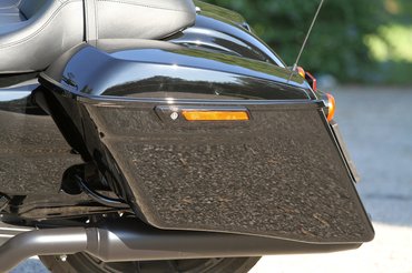 A Harley 1936 óta gyárt túramotort, és a Road Glide is már 20 éves típus, volt ideje letisztulni. Fontos evolúciós lépés volt a csuklós fedelű dobozok elhagyása – a mostani, simán záródó két oldaldoboz összesen 75 liter rakteret ad, és szerszám nélkül lekaphatók. Ez utóbbi nem csak a szobába felcuccolásnál praktikus, hanem szerelésnél/karbantartásnál is. A riasztó és a kulcsnélküli indítás szintén hosszú utat járt be, mire eljutott a mostani, tökéletesen működő állapotáig. Nem kell semmit nyomkodni a jeladón, a motor egyszerűen érzékeli, hogy közel vagyok, fordítom az önindító helyén lévő kallantyút, és indíthatok is – ismerek olyat, aki egy régebbi modellnél kiköttette a hangszórót, annyira idegesítette a sok puttyogás, ami az indítás előtti szertartások kísérője volt.
