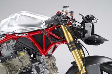 A segédváz alumíniumból készült, és egyszerre támaszkodik a vázon és a hátsó hengeren. Az árról még nem esett szó, de a kisszériás típusról lévén szó, egészen biztosan drágább lesz a gyári Panigalénál.