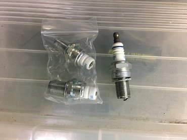 Ez már versenygyertyával fog üzemelni. Sajnos elkerülhetetlen, mert majd mint később látjátok, volt egy kis hengerfej módosítás is (HRC gyári javaslat alapján) és a gyári gyertyák túl magasak. Az első fekvő hengerfejen beleértek volna a gumiba féktávon. Már ha tudok majd olyan féktávot venni. De az új versenygyertyák kb. akkorák, mint ami egy láncfűrészbe kell. Persze a motort melegíteni így is gyári gyertyával kell, na de azt később.