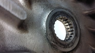 Körbetapogattam a szíjpályát, hoppá, a hátsó áttételnél levő belső tárcsafélnél valami különös történt... tapogat, tapogat, ujj felsért... a belső tárcsa tört el. Annyira eltört, hogy csak csonkok maradtak belőle. A fene, szedhetem szét. No problem, a régi Spacynél a kuplungról még darabokban jött le az anya, mert rettenet mód rágyógyult, de mostanra vettem 180 Nm-es lidles csavarozógépet, majd az ellátja ennek a baját.