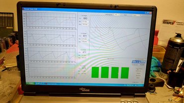 Miután Gábor mindent átnézett, beállított, egységesítette az idomok csavarjait, felszámolt gányolásokat, meghelicoilozta a szelepfedél kieső meneteit, és úgy általában eltakarította az előző mesterek bűneit, bejelentkezett egy mesésen szép karburátorszinkronnal.
