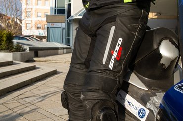 A forgalmazó szentendrei úti üzletében elsőként egy prototípus nadrágot próbálhattam fel, illetve csak combközépig. A 184 cm-es magasságom és az ehhez tartozó 93 kilogramm az XL méretet sejtette, így a remény hal meg utoljára elv nyomán felpróbált L-es darab természetesen csak az említett magasságig jött fel rám. A logaritmikus keresés elv szerint inkább két méretet ugrottunk, így meg is lett a megfelelő darab, egy XXL méretű belépő szintű bőrnadrág, a sajátmárkás Speed Up Trip (56 900 forint).