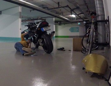 Délután visszasétáltunk Nyegleóval és Antival, és segítettek eltolni a szerkesztőség teremgarázsába, szerencsére nem vagyunk rosszarcú srácok, így a dolog nem nézett ki lopásnak, egy yamahás tag együttérzően oda is intett, jelezve, lélekben osztozik a nyomoromon.