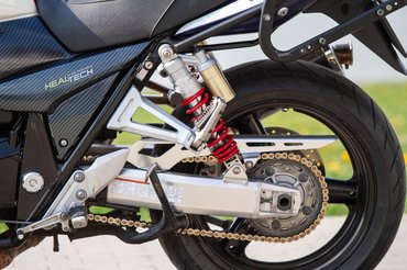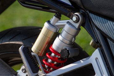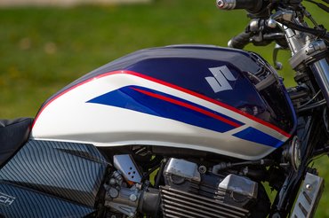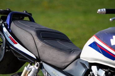 A formaterv suzukisan elnagyolt, igénytelennek viszont véletlenül sem nevezném, inkább csak darabos - cserébe olyan részletekkel örvendeztet, mint a szép alumínium lengővilla, a lefelé fordított hátsó féknyereg, az állítható csillapítású hátsó rugóstagok vagy a szintén állítható, 46 mm-es belsőcső-átmérőjű első villa. A karbon sportdob viszont egyáltalán nem illik a motorhoz, ahogyan az oldalsó idomok kamu karbon bevonata is stílusidegen. A kényelem kifogástalan rajta, a kis szélvédő meglepően sokat számít, egyedül a középsztender zavart, amibe folyamatosan beleért a sarkam - ez egyébként megint a sportkipufogó bűne, ugyanis a középállvány nem a gyári felütközési pontra fekszik fel, hanem egy utólagos, a kipufogóhoz hegesztett lemezre.