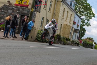 Néhány száz méterrel lejjebb, ahol tisztán látszik a repülő motor – mögötte csak az ég – nincs jó hely, ha beszitál, és buknak, nincs ember ki elmenekülne. Ettől függetlenül mégis az egyik olyan helyszín, ahol nézők tömegesen ülnek a kőkerítésen. Mögöttük egy szúrós sövény, ahová bevethetik magukat, de attól mégis jobb, mintha nyakon verné őket egy Superbike hátsó lengővilla. A kerítésen reggel még francia kolónia foglal helyet, délutánra cserélődik a közönség egy része. Helyi idegenvezetőm még elmondja, átfuthatnék pályazár előtt még az út túloldalára, hátha onnan jobb, de ott meg az a gond, hogy a húsz centis töltés mögött vizesárok húzódik. Ha oda csapódnak, inkább ugorjak az árokba, majd mosolyogva hozzáteszi, a munka legnehezebb része, ha valaki bukik, és helikoptert kell hívni. A helikopter csak a vizesárok mögötti mezőn képes leszállni, viszont a hordágyat az árkon valahogy át kell juttatni. Ilyen instrukciókkal, földbegyökerezett lábakkal vártam az első Superbike futamot. A 2019-es TT első versenyét, melyre olyan sokat várt mindenki, melynek lebonyolításában bevallom, erősen kételkedtem.