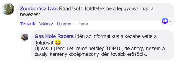 (Azt el kell mondanunk, hogy szerelőt csak a tavalyi verseny előtt látott először, főtengelycsapágy-csere miatt. Minden mást Gázos Tomi és Villany Bandi szerelt, az Infósok asszisztálásával. Nem nagyon volt edzés, finomhangolás, csak téptük neki.) A 14. helyre volt jó.
