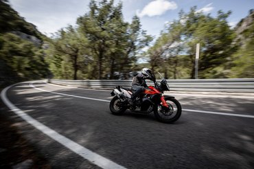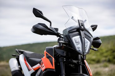 Már az országúti csavargás során kiderült, hogy a 790 Adventure kellemes túramotor, hiába karcsú, az ülés kimondottan kényelmes, az üléspozíció is laza, a szélvédelem is megfelelő - a plexi két pozícióban állítható, viszont ehhez szerszám kell, úgy látszik, a 1190 Adventure pofonegyszerű és praktikus kallantyús szélvédőállítását nem örökítették tovább. Kár érte, azt kis gyakorlattal menet közben is lehetett finomhangolni.