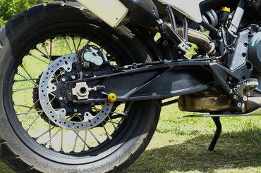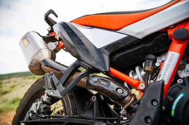 A kormány is magasabb, az ülés is rendes, egy darabból álló, endurós stílusú, egyből adja magát az állva motorozás. A motor keskenysége érdekében az airboxot és a légszűrőt szokatlan módon hátra, az utas helye alá szerelték, így a cseréje is megvan két perc alatt.