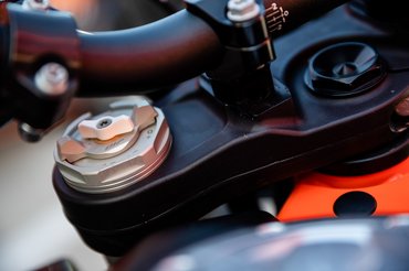 Szempont volt még az egyszerű szerelhetőség - ha valami, akkor ez például soha nem volt igaz az egykori, máig visszasírt 950/990-esekre, viszont a KTM LC8c blokkja (a c azt jelenti, kompakt) egyrészt sokkal kevesebb alkatrészből áll, másrészt építési filozófiáját tekintve már a japán motorokat idézi. Viszont tényleg nagyon kompakt, aminek az Adventure szempontjából két fontos hozadéka van: kellemesen keskeny motort tudtak építeni hozzá, és a lehető leghosszabb lengővillát lehetett a használni, ezek jót tesznek a kezelhetőségnek.