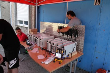 Lassan végére ér a gépátvétel, idén minden simán ment, nem kellett sisakot elkobozni, és a motorok is rendben voltak, legfeljebb apróságok miatt kellett szólni. Mostanra mindenki átvette a transzpondereket - motoronként két, egymástól független jeladó van, így tulajdonképpen kizárt, hogy mérési hiba legyen. Tizenegykor tartunk egy eligazítást a versenyzőknek, aztán délben felmehetnek a pályára, és elkezdhetik az edzéseket.