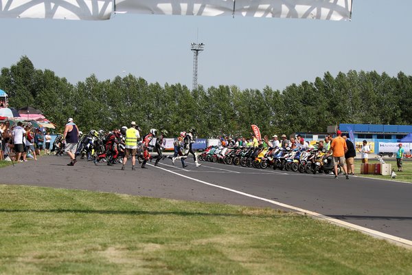 Sajnálom, de életemben először megenge dem magamnak, hogy elvakult rajongóként közvetítsek a versenyről, ugyanis gyanús, hogy a Totalbike egyik legerősebb különítménye állt ma rajthoz, olyan versenyzőkkel, mint az egykerekezés koronázatlan királya, Bistei „Wheelie” Peti, Szabó „Fastride” Henrik, Filep „Pszicho” Tomi, és Stumpf „Bérgyilkos” Bandi. Ez nagyjából annyit jelent, hogy van két ultragyors emberünk, akik a magyar sportmotoros élet ikonjai közé tartoznak, egy feltörekvő fiatal tehetségünk, aki Japánban tanulta, miként válhat valakiből igazi kamikáze, és egy Bandi, aki hidegvérű bérgyilkos módjára egyszerűen csak gyors, és precíz. Kijelenthetjük, hogy az idei felállás a Totalbike Legends, olyan nevekkel, amilyeneket Kagajama Yukio legendás szuzukai csapata óta nem láttam, miután ismét motorra ültette anno Kevin Schwantzot. Bizonyos háttérinformációk alapján úgy tudjuk, hogy a szuzukai menők jövőre szívesen jönnének kecsóra edzeni, mert a körülmények mondhatni kritikusak. A Totalbike csapata ugyan elveszített egy idomot, de ideje már 1:10 alatt van, folyamatosan gyorsulunk. Péter elmondta, hogy a rajtnál gondjai akadtak a gyújtással, ezért esett vissza, de valami eszméletlen győzni akarás hajtotta, és felhozta a csapatot a 13.-ik helyre. Jelenleg a 18.-ik helyen állunk.
