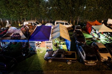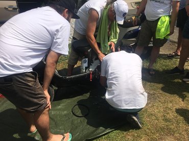 A mi pilótáink is előkerültek, Bandi még a tartalékfelnikre szereli a gumikat, a többiek kávéznak és nézik a felhőket. A sajtós stáb pedig elkezdte a munkát, Károly és Anti kezében forog a kamera, nemsokára akár mozgóképpel is jelentkezünk.