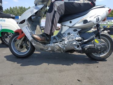 A New Kids Scooter érzi, hogy tétje van a menésnek, mentek egy 1:04.890-et, ami a csapat legjobb ideje lett, és adtak két kört az AVL-nek, akik eddig vasmarokkal szorongatta őket. És csak most hívták fel a figyelmemet, hogy a New Kids Scooter Malaguti F12-ese - hatásszünet - LÉGHŰTÉSES!