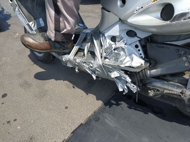 Update: elkiabáltam az előbb. Baj van, elszakadt a szíj a robogónkon. Valószínűleg. A srácok most bontják le az oldalát.