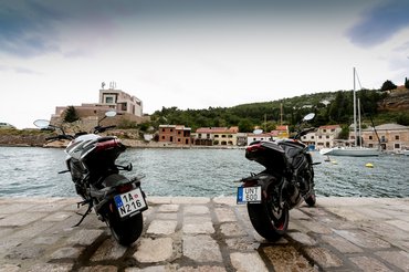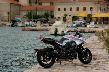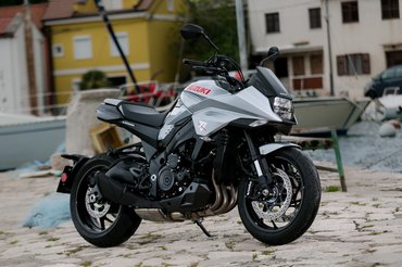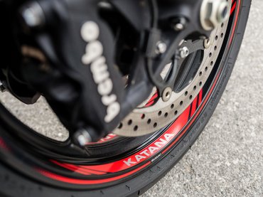 Sajnos a horvátországi teszten a csapatás helyett inkább csak közlekedni tudtunk, ugyanis a szél miatt lezárták a motorosok elől kedvenc útvonalunkat. Viszont elég sokat volt már szerencsém menni GSX-S1000-rel, ami egy nagyon kellemes utcai sportmotor. A Katana pedig lényegében ugyanaz – csak az idomokat nem hőlégfúvóval alakították rá. A jó öreg K5-ös Gixxer közel 150 lóereje több mint elég, minden fordulatról mérges morgással indítja meg a telitankoltan 215 kilós jószágot. Az áttételezése lehetne rövidebb is, mert ereje ellenére egyesben is rendesen alá kell festeni kuplunggal egy rendes egykerékhez. A néhai ezres sportblokk olyan, mint egy jól nevelt cirkuszi medve: lehet vele játszani, de ezért megvan benne az erő, hogy letépje karodat. Egyébként meg tipikusan az a harmadikban hagyós motor, hatvantól százhatvanig minden helyzetet meg lehet így oldani. Hamar is fel lehetne váltani a fokozatokat, de akkor elmarad a show – ha rányitod a tüzet, morog, ha elveszed, hörög. Nagyon kívánná a gyorsváltót, de sajnos a gyár nem kínál hozzá. Van ugyan hozzá míves kidolgozású Akrapovic, de a gyári dob sem az optika, sem a hang miatt nem szorul okvetlenül cserére.