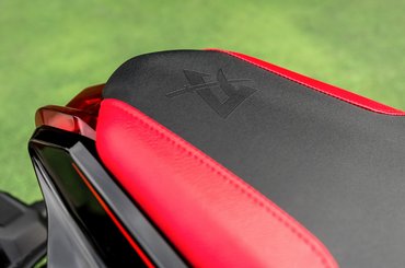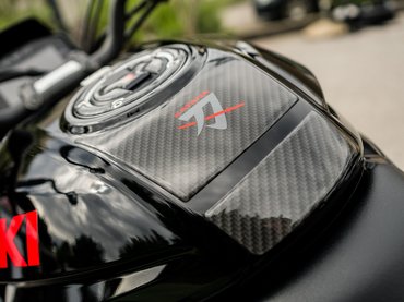 Az olasz remake szigorúra sikerült: ha kellően feketébe öltözik mellé az ember, könnyen a Yakuza futárjának fogják nézni. Éles vonalak tagolják fejidom-tank együttest, a hideg fényű led-es kocka fényszóró különösen ráerősít a mogorva fellépésre. A két kis csenevész menetfény helyére viszont nyugodtan beépíthették volna az indexet, ami nem törne le az első eldőlésnél, és a szemet sem zavarná. A hátulja igazi dizájnorgia a szememnek: a rendszámtartótól megfosztott széles faridom a kusza formájú lámpával a legvagányabb dolog, amit a Suzukinál valaha rajzoltak. Okos lépés volt átemelni a GSX-R1000R műszerfalát, aminek színes kvarcjátékokat idéző kijelzője sokkal jobban illik ide, mint a szupersport csúcsmodellbe.